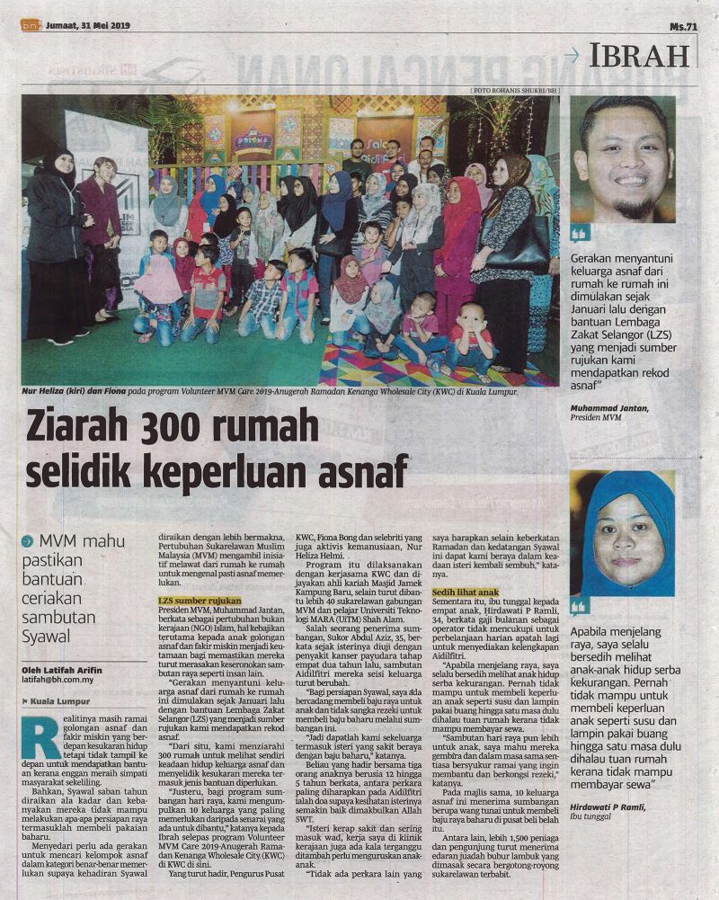 Latifah Arifin. (2019, May 31). Ziarah 300 rumah selidik keperluan asnaf. Berita Harian, page 71.