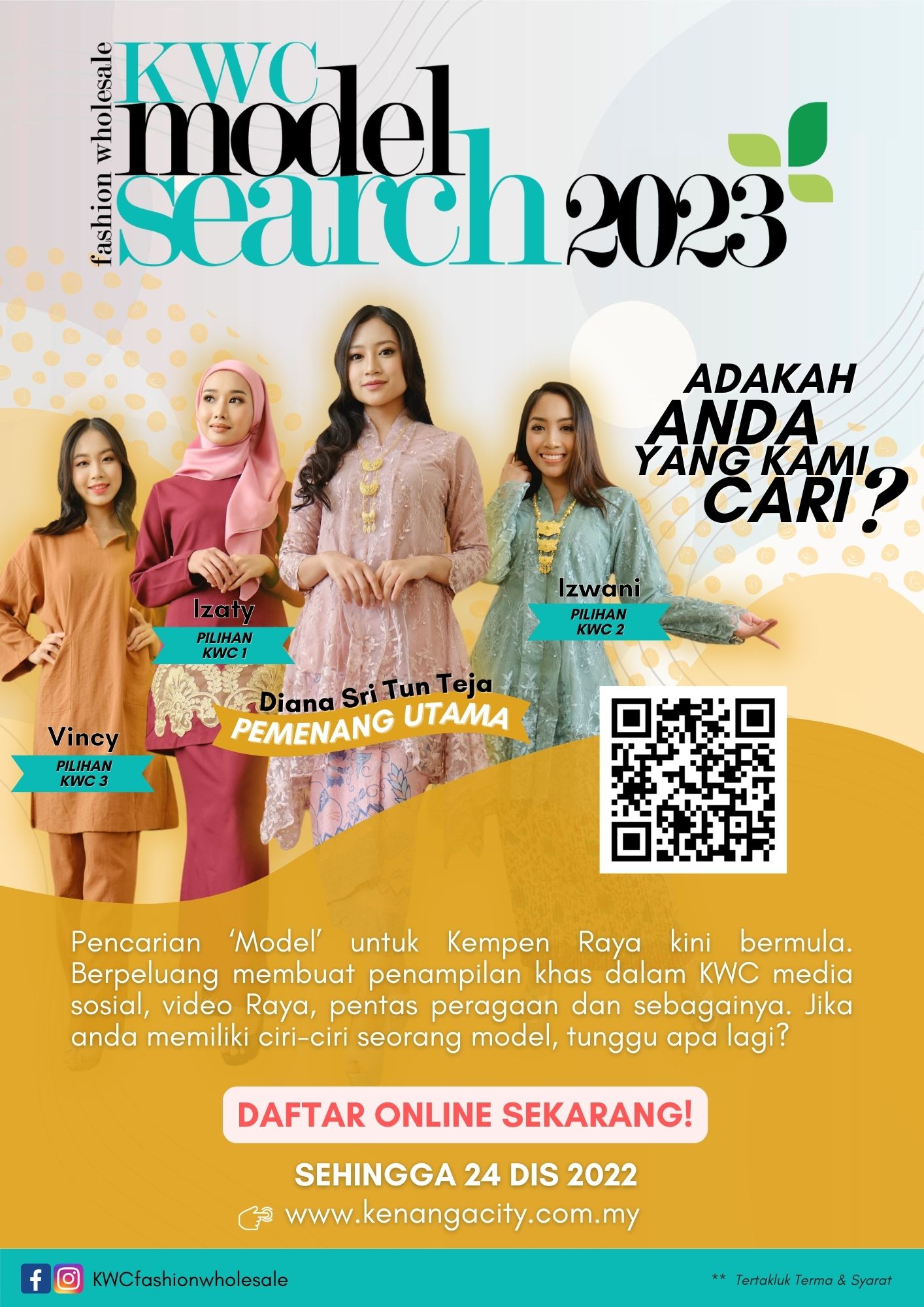 The KWC Model Search is back! Here’s your chance to be featured in our 2023/2024 Advertisements, our KWC Raya Campaign as well as win CASH prizes. Kickstart your modelling career by registering now to be the face of KWC Fashion Wholesale 2023!