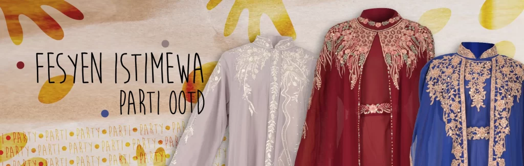 Terdapat pelbagai pilihan yang mengikut tema anda gemari untuk dipadankan pada hari tersebut, OOTD anda pasti mendapat kegemaran ramai. Dari majlis minum petang,rumah terbuka atau malam anugerah, rekaan pakaian yang ditwarkan pasti menjadi tumpuan. Gaun labuh berjemeki, gaun renda bersulam eksklusif atau abaya yang moden pasti membuat anda rambang mata.